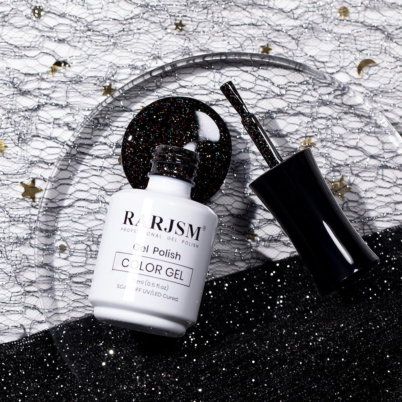RARJSM Gel Nail Polish Black Glitter Sparkly Chunk…