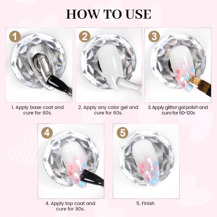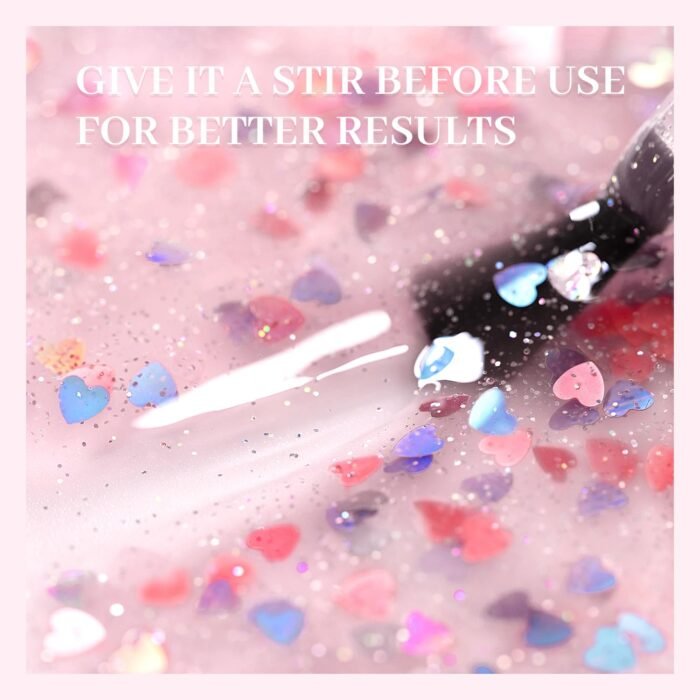 GLOSSY SHINE FINISH: Achieve a glossy shine that lasts! Our Heart Shape Glitter Gel Nail Polish not only provides vibrant color but also delivers a high-shine finish that keeps your nails looking fresh and beautiful