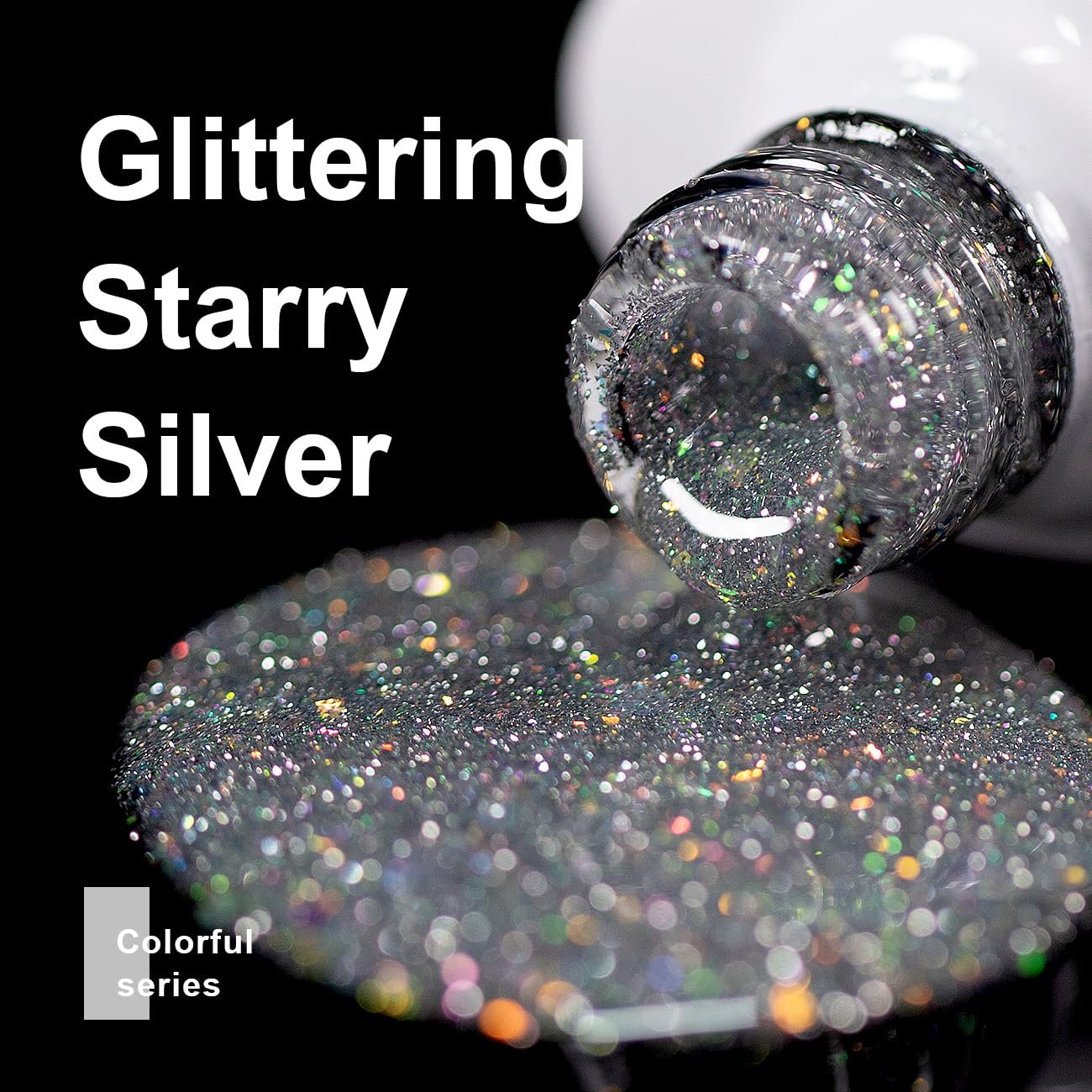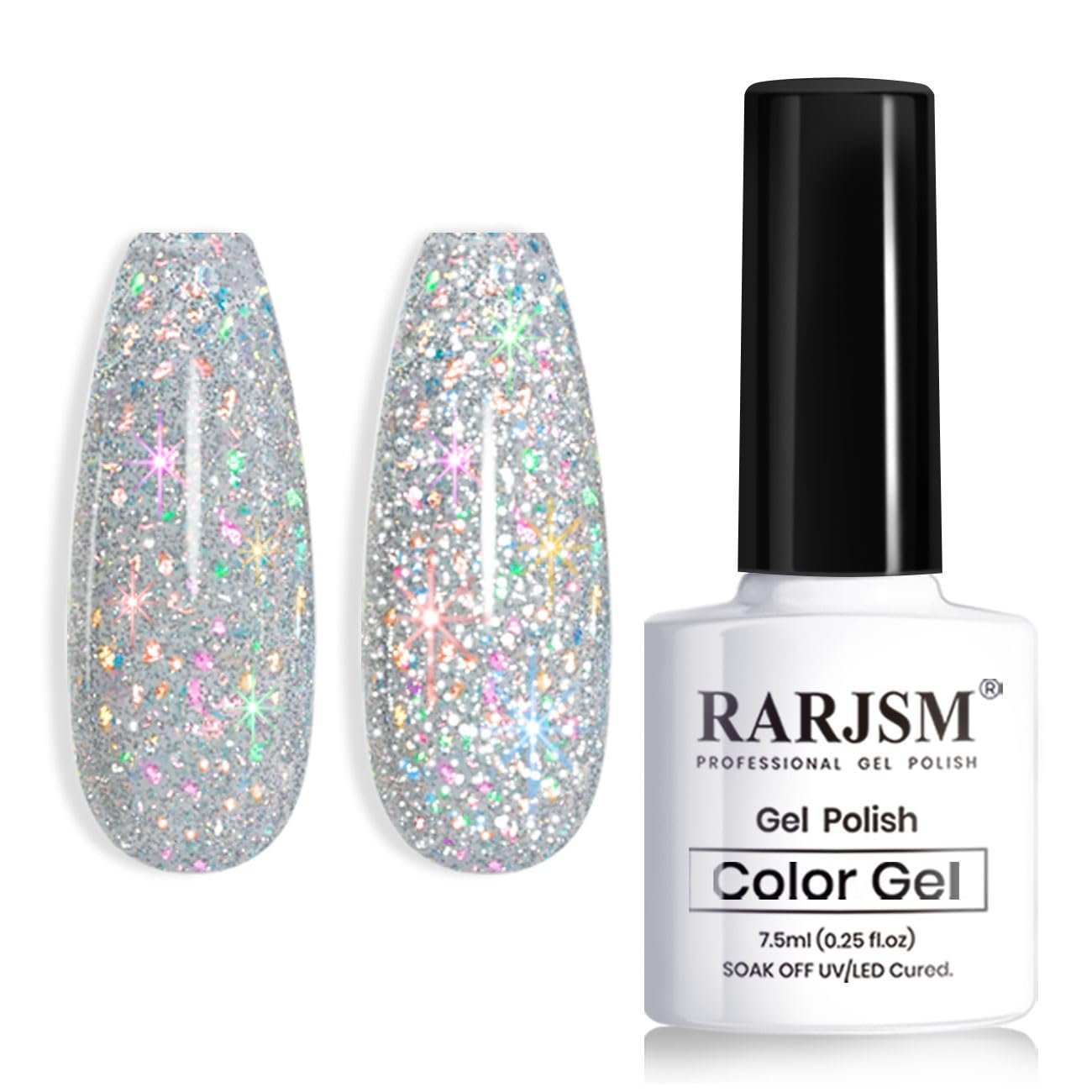RARJSM Reflective Glitter Gel Polish Silver Sparkl…