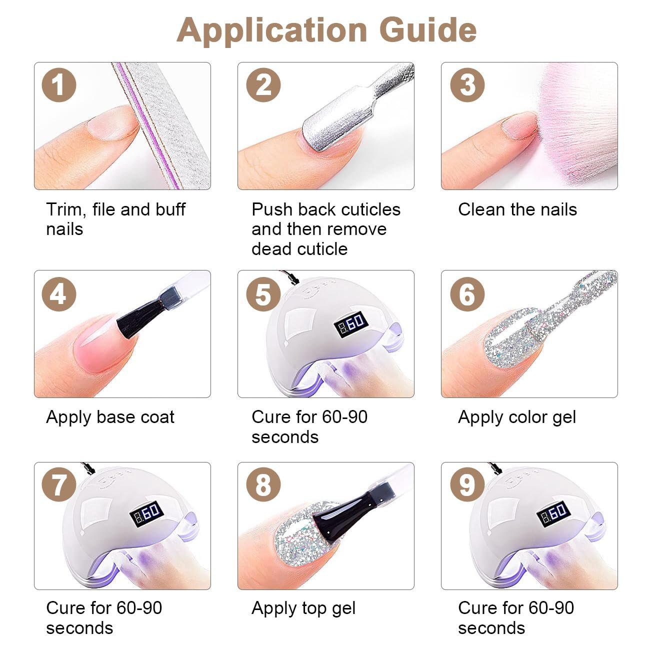 Salon Quality: The reflective glitter gel is made from natural resin. It has no irritating ingredients or adhesives and has a lower odor. It is rich in color, highly pigmented and good tenacity. You can achieve salon quality results in the comfort of your own home with our gel nail polish