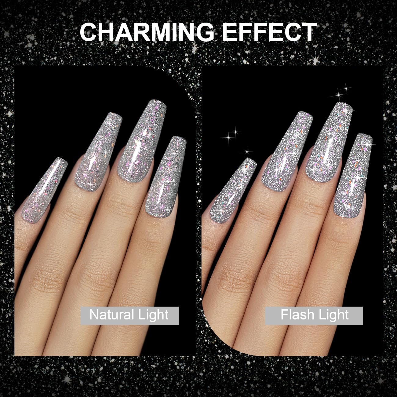 Home Manicure & Pedicure Products Nail Glitters RARJSM Reflective Glitter Gel Polish Silver Sparkl…