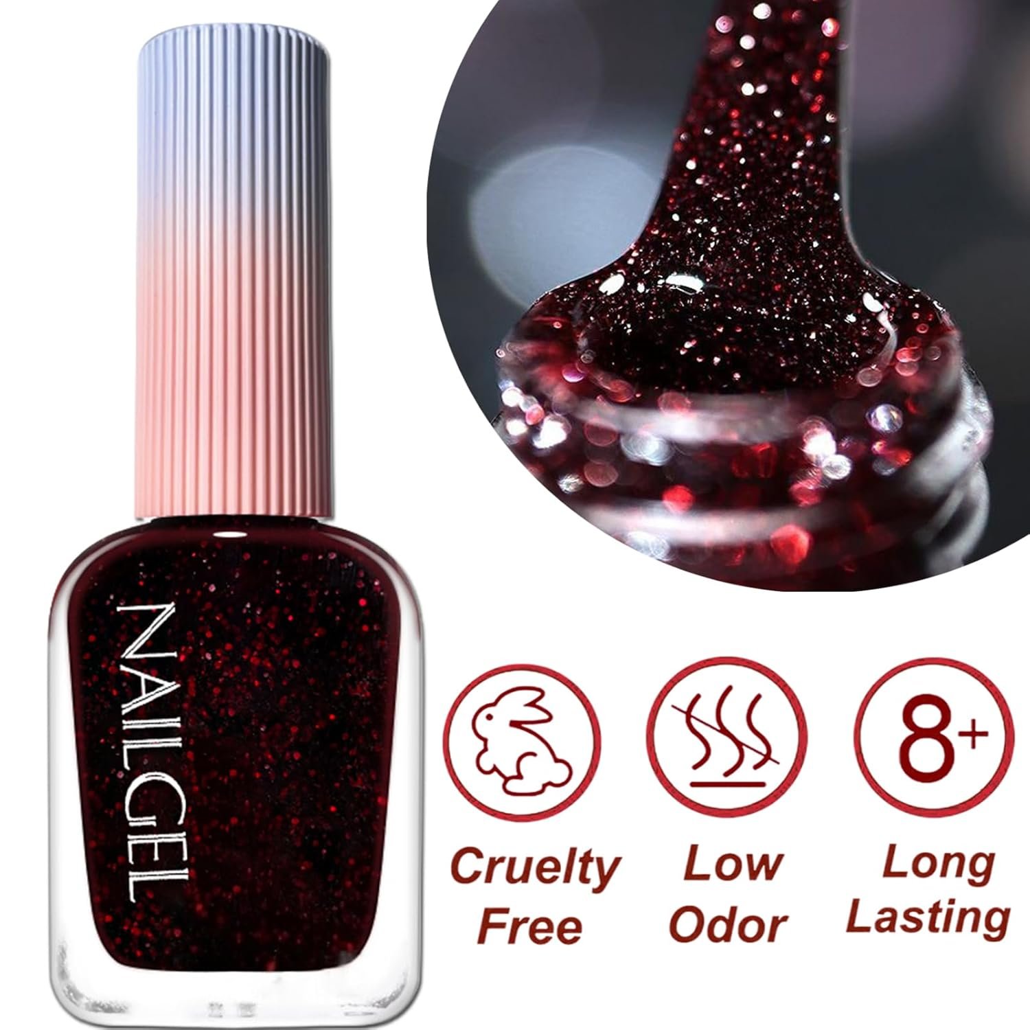 No UV lamp needed—this red glitter nail polish dries quickly and evenly with a smooth application. Achieve a salon-quality manicure in the comfort of your home. ✨Perfect for Holidays & Parties