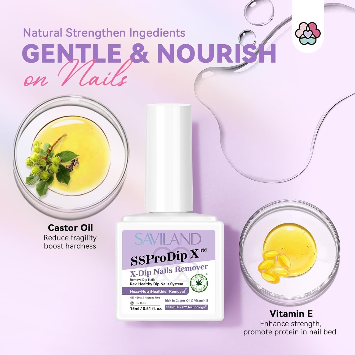 Nutri-infused & Damage-free: With SSProDip X technology, we combine multi plant-based nutrients such as castor oil, and vitamin E to enrich your nails. This gentle approach ensures a nurturing experience during dip powder removal or nail care, keeping your nails healthy and beautiful without any harm