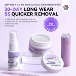 Skin-friendly & No Harmful Ingredients: SAVILAND SSProTip X 4.0 Solid Nail Glue Gel and Solid Nail Gel Remover are fortified with Castor Oil, Vitamin E, and a 26-Free Formula that meets international cosmetic standards. This combination safeguards against nail breakage, brittleness, dryness, curling, peeling, and splitting while ensuring nails remain hydrated and shielded.