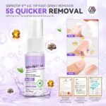 5-Second Quick Removal: SAVILAND SSProTip X 4.0 Nail Gel Remover, specially designed to eliminate solid nail gel glue, features fast-acting ingredients that swiftly penetrate the nails in a spray form, completing removal in just 5 seconds. Enriched with Castor Oil and Vitamin E, this solution ensures efficient removal of press-on gel nails while nourishing and protecting your natural nails.