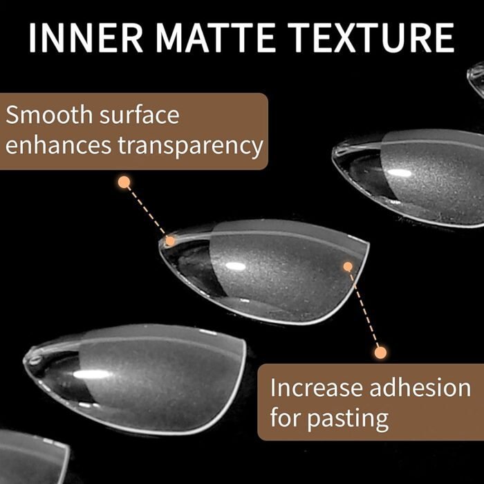 Easy to Use: Our smooth edge of tips have a more shallow curve, convenient to press on nail beds tightly, without feeling uncomfortable “tightness”, keeps the color good without separation or exposure, and your nails will look more natural. Pre-shape tips do not need to be filed and save much time, and sturdy sticking.