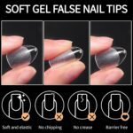 Almond Tip with No Trace: The fake nails are gelly soft tips and will make no trace even bend, bright clear you can more easily press, trim, and paint square straight false nails to make your dream nails shape. DIY manicure gel tips.