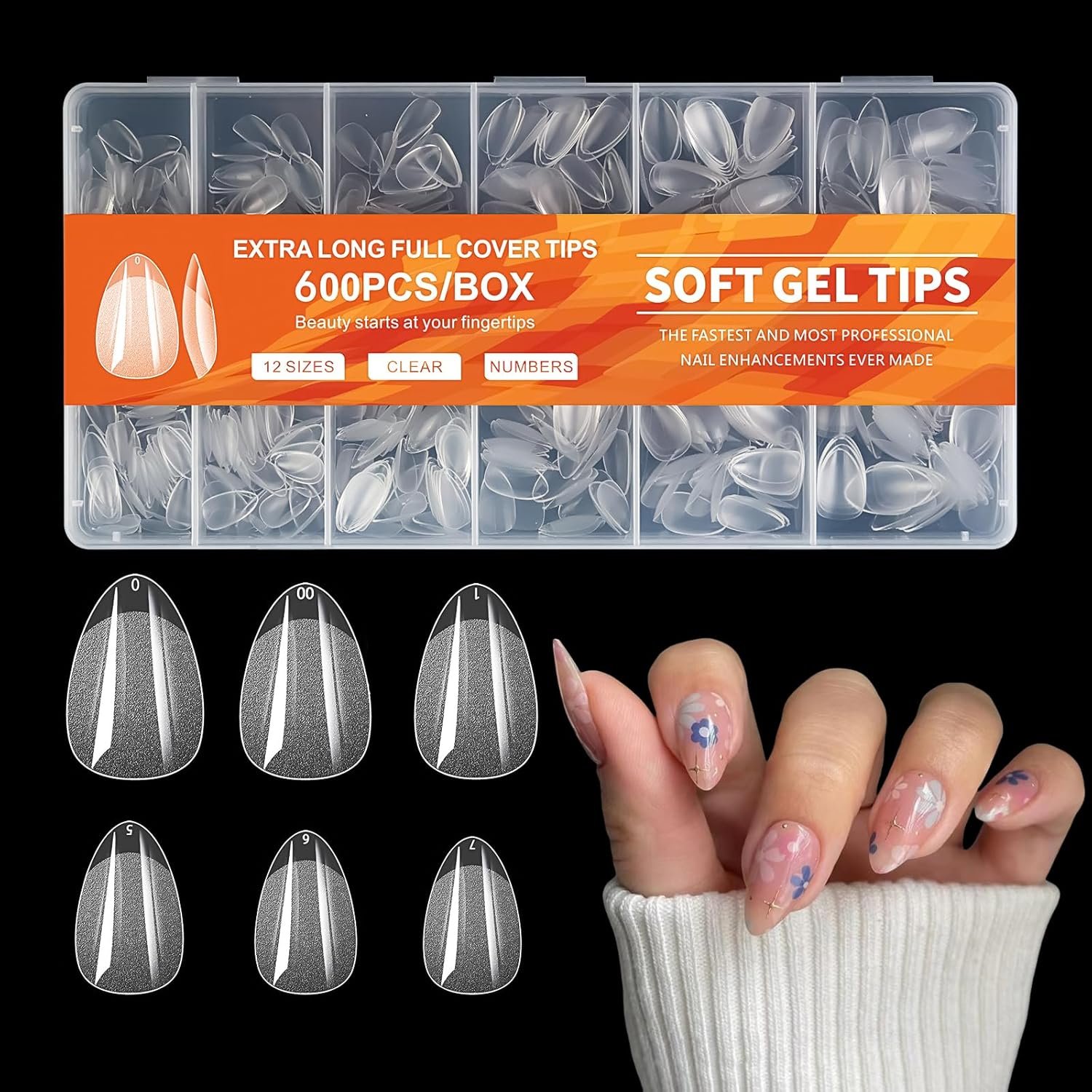 12 Sizes Tips Fit Your Nails: Our clear Almond tips contain 12 sizes with size numbers on the top of the tips can easily pick the proper tips for your nails. And the accurate size can suit all your nails.