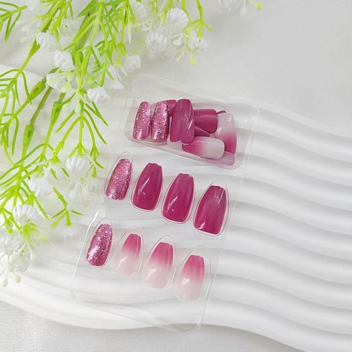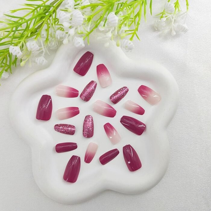 Pink Gradient Press on Nails Medium Ballet Artific…