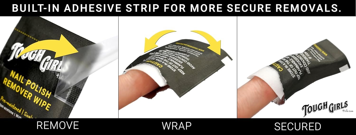 Mess-Free Application: Each Tough Girl’s wipe packet includes an outer adhesive strip to secure the packet around your fingertips, ensuring remover pads stay in place, prevent messes, and make the nail polish removal process clean and convenient
