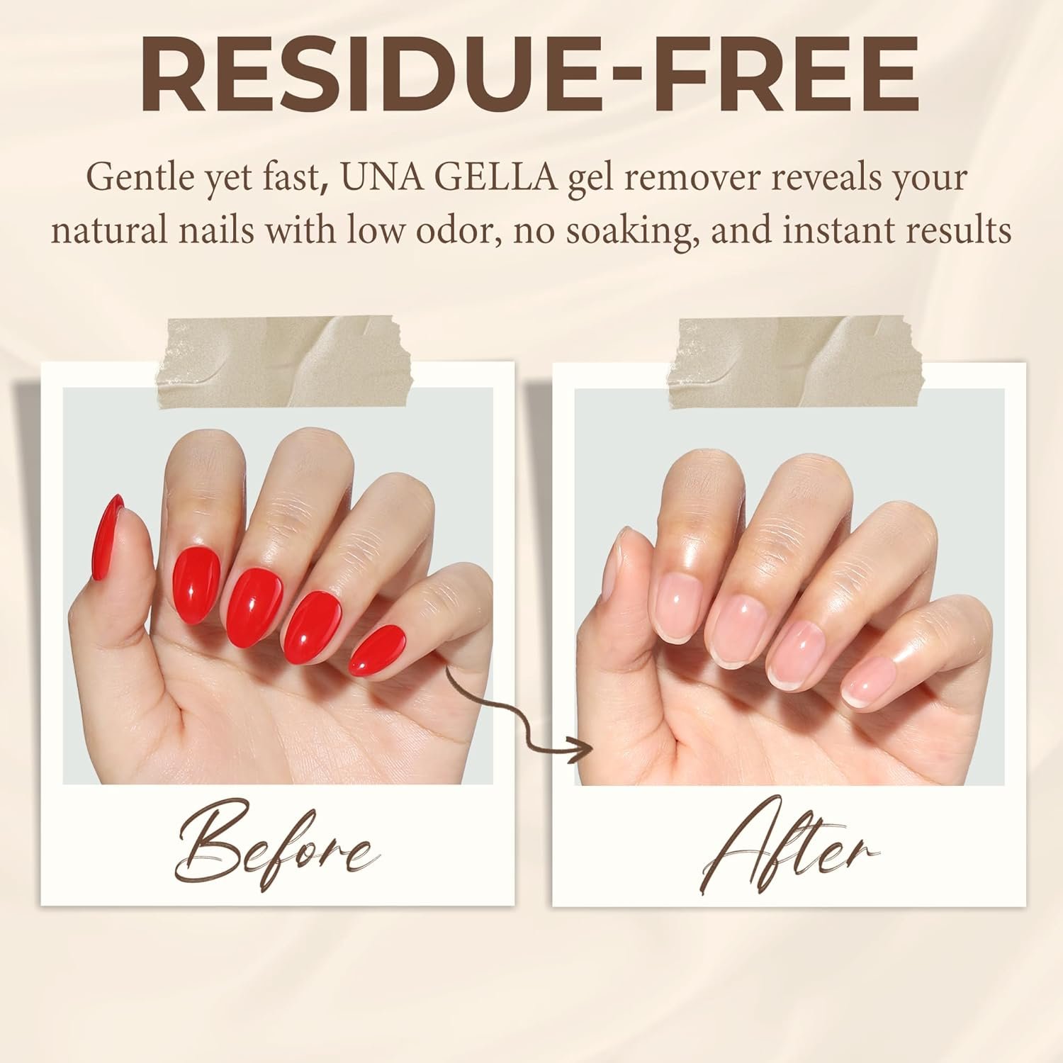 Easy & Quick Nail Removal: Effortless removal in just 5 minutes with Una Gella gel nail polish remover. Gently returns your nails to their natural beauty without messy soaking or damaging drills. Leaves your nails ready for your next manicure.
